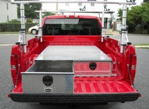 Mounted along the bed rails for easy access without sacrificing bed space. Ideal for contractors and service vehicles. - Crossbody Toolboxes