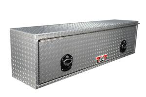 Heavy Duty Truck Under Body Truck Tool Box - Manufactured from .100 thick diamond tread aluminum. Bottom corners reinforceed with .125 thick smooth aluminum. Welded gussets in each corner of the door frame. Features STRATTEC high quality key cylinder. Free turning handle when locked. Full wrap, one piece body design with full HD aluminum lock cover protection and stainless steel support cables.